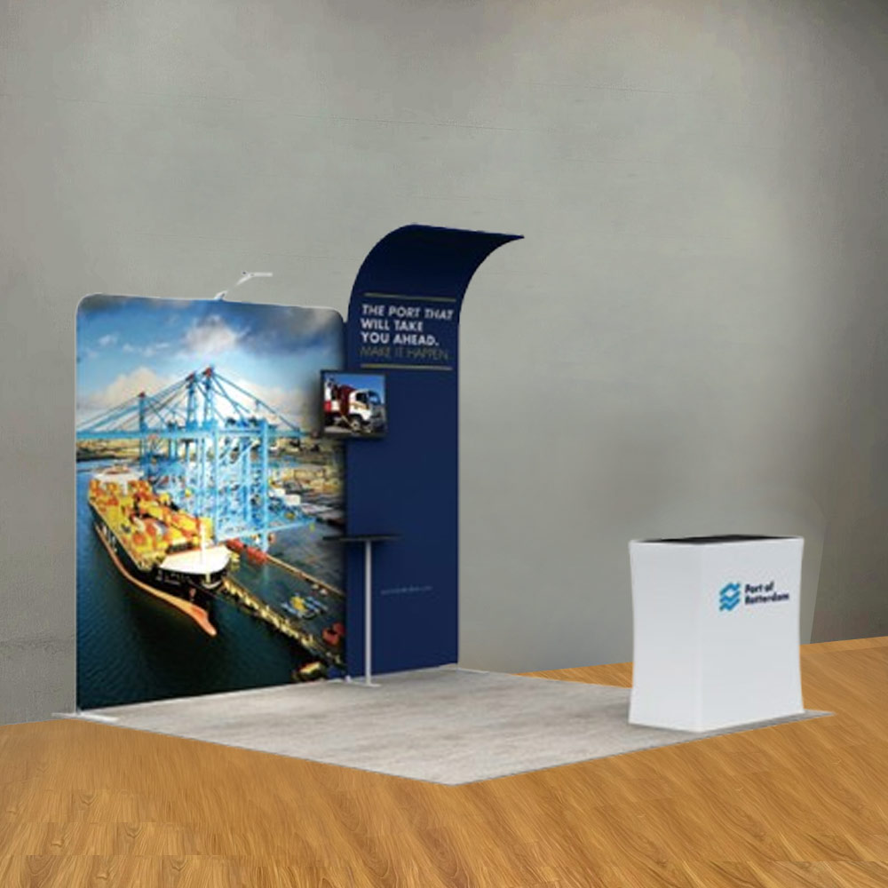 Made of premium materials and quick to assemble, the Booth Display suits those companies that desire an attractive, professional look without all the hassle. The contemporary design and bright, stunning fabric prints ensure that your messaging will be crisp and clear, loud and bold, and absolutely impossible to miss.